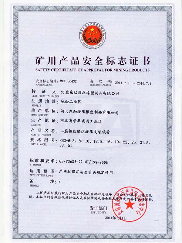 注冊資金7000萬,生產設備300多臺套,檢測設備300多臺件,膠管900萬標米,各類管件接頭2億余件,膠管組合件1億余套。